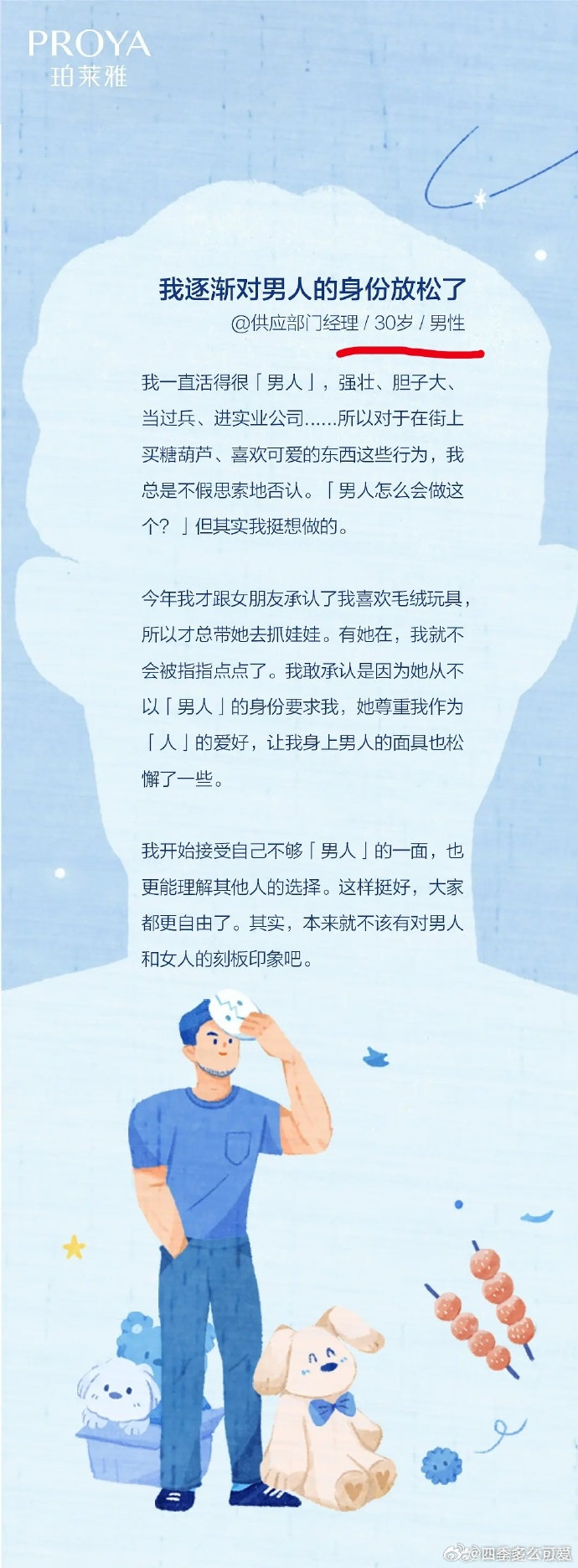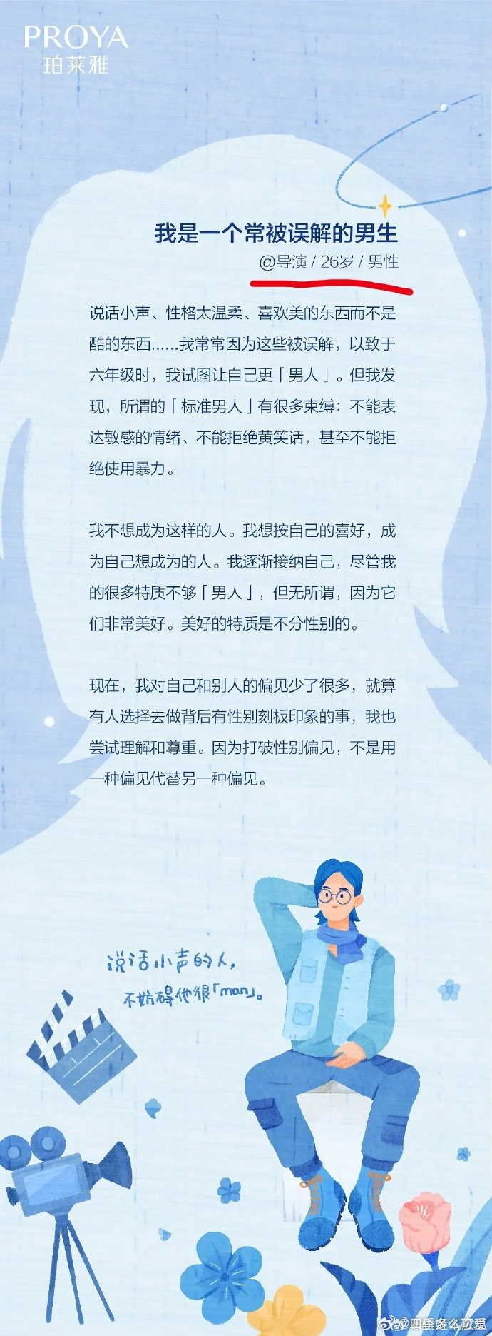 这句文案,在大家聚焦于社会对女性的偏见时,把社会对男性的一些偏见也指了出来。