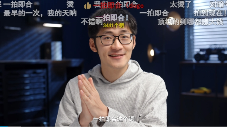 结果也已经证明,这次策划非常成功——观众纷纷刷出“一拍即合”“排面”“牛逼”等弹幕。“一拍即合”是影视飓风独创的商单“暗号”,视频中也直白解释,每当Tim(影视飓风主理人)说出“一拍即合”这个词时,即意味着本期节目是一期商单合作。这个俏皮又真诚、带着影视飓风烙印的独特方式得到了广泛接受,是UP主与观众对商业化达成默契的经典案例。