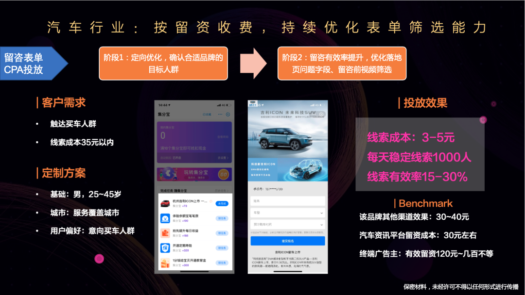 在“灯火”平台上,基于流量商业化的效果广告,在汽车行业、房产行业、本地生活服务等细分行业类目下,已经有了一些不错的成果示例: