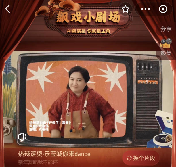 和《热辣滚烫》一起大爆的,还有支付宝的AI换脸“飙戏小剧场”,228万人次换脸参演春节档电影;