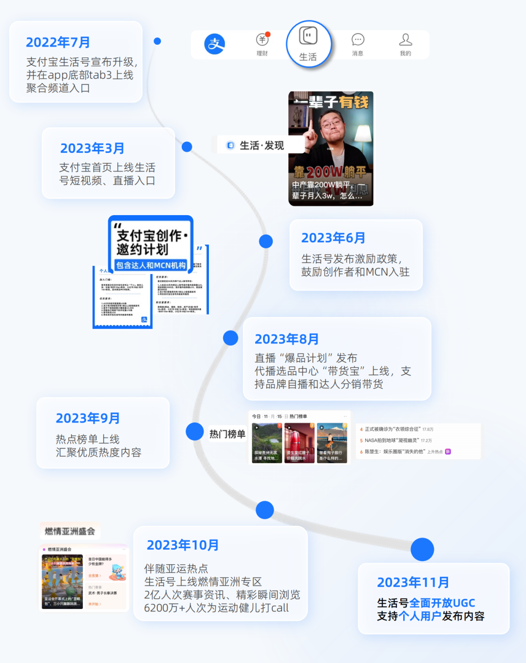 根据2023年12月克劳锐发布的《支付宝内容生态观察》,支付宝生活号泛财经内容体量近半年来增长迅速,近半年月均发布量增长超10倍,成为支付宝的优质垂类内容之一。