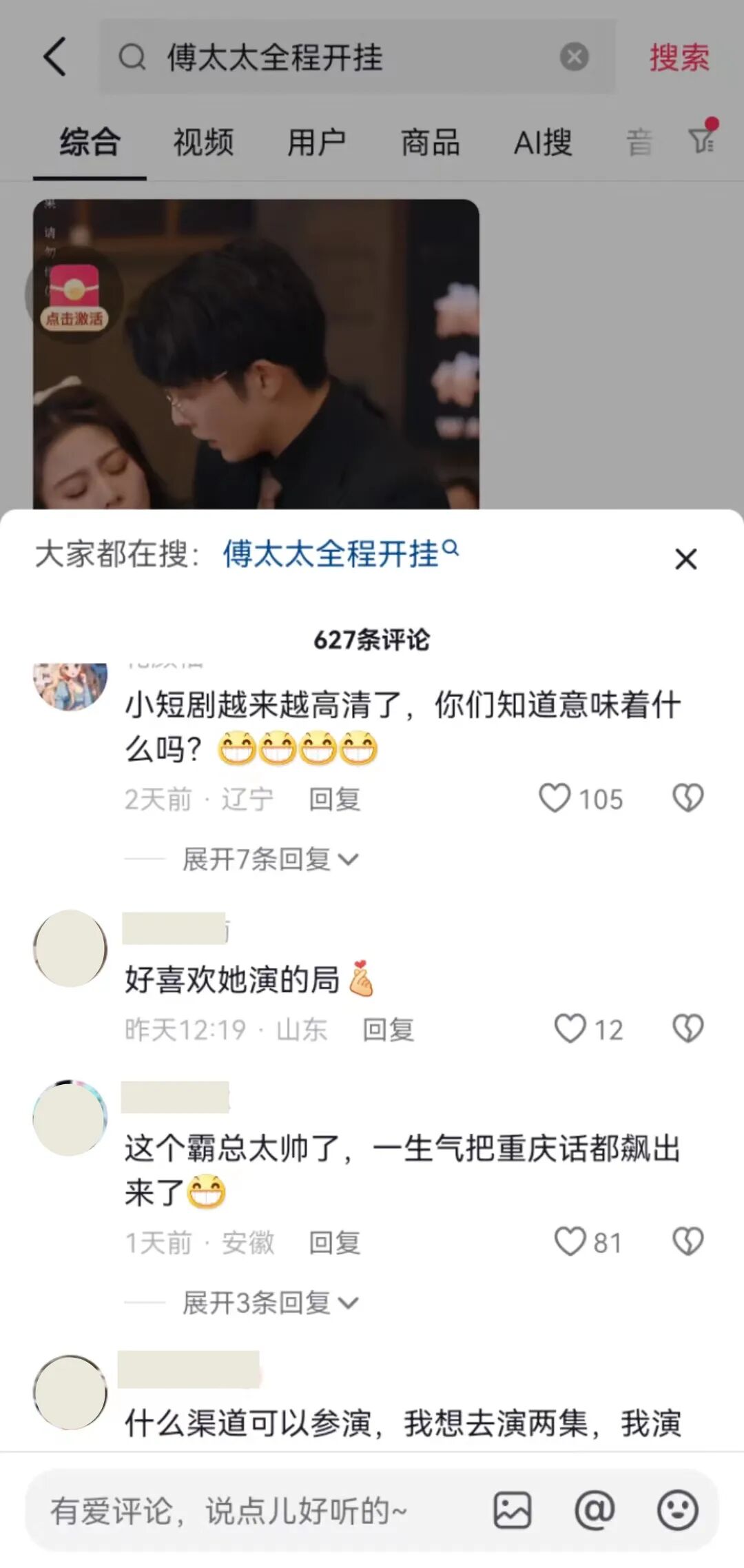 闲鱼这波开年爽剧营销模式实在太顶,剧集一上线,热度迅速扩散。在闲鱼官方账号上,每一集下面都有百余条网友评论,在更新过程中甚至不少网友在线催更。在微博、抖音等平台,闲鱼的翻身爽剧也火上热搜,不少网友看后表示:“一口气追完10集”“爽得我头皮发麻了”“短剧质量都比电视剧高”“你别说台词土,但我是真的爱”。