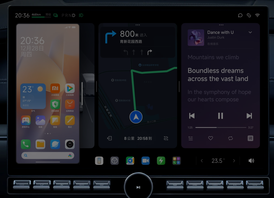 基于HyperOS的小米智能座舱,设计理念与小米手机、平板等设备统一,桌面应用、字体、图标、动效等都能随意更改和拖动。B站博主发布的小米SU7中控录屏显示,车机系统UI设计风格与小米平板十分相似,底部有应用快捷图标和应用抽屉按钮,操作顺滑流畅。这种统一的设计理念,有助于降低用户学习成本。