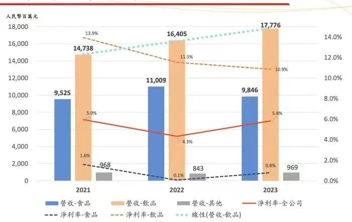 但在方便面板块中,2023年销售收入为95.943亿元,而其背后的食品业务营收,与2022年相比下滑约10.5%。