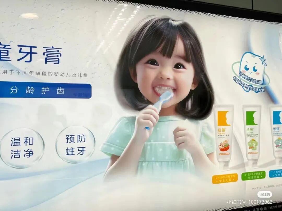 还有代言牙膏的小女孩,本来是个很可爱的小孩子,如今看起来却像极了陶瓷娃娃。