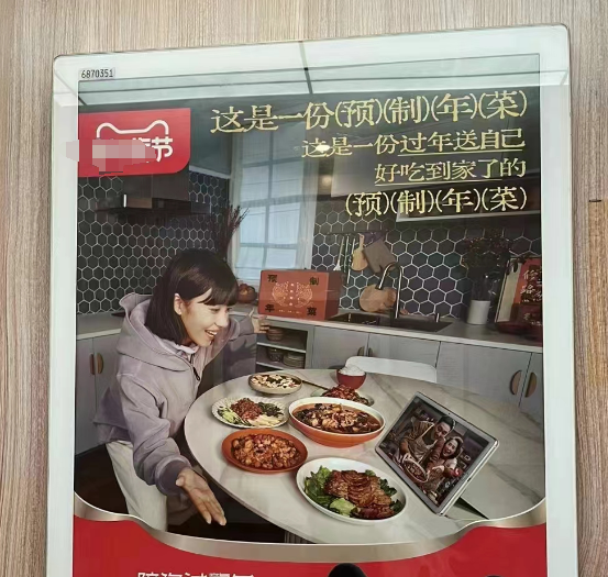 不过争议最大的,可能就是年前某品牌推广的预制菜电梯广告,被吐槽除夕不放假,连过个年都要AI化。