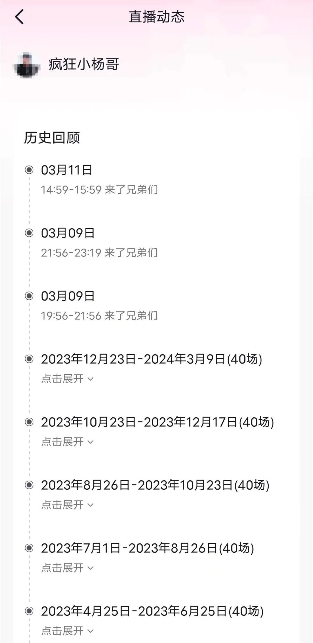 翻看“疯狂小杨哥”的抖音账号,可以发现他去年和今年的直播频率差很多,去年1个月基本能播20场,但今年2月份却只播了一场。