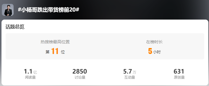 但最近,顶着“抖音一哥”光环的小杨哥却被曝掉队了,#小杨哥跌出带货榜前20#的话题,直接冲上了热搜。