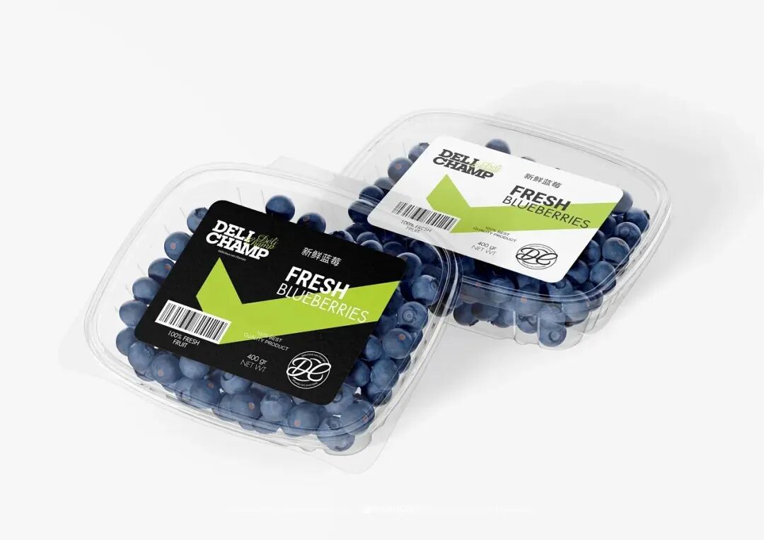 商品包装上,则根据不同产品品类选择合适的包装盒型,灵活调整包装视觉,突出重点,方便用户选购。如果蔬类的设计,为了更直观地突出产品的“鲜”,选择透明包装盒,并贴上品牌名标签,增强质感。