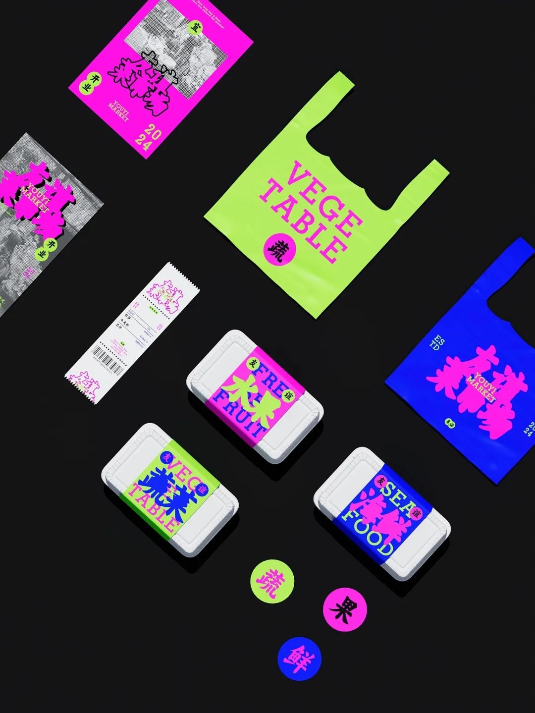 本次品牌设计,旨在打破传统菜市场的“无风格”设计,让菜市场也可以变得好玩、潮流,容纳更多不同年龄群体的消费者,既能扩大客群,也开辟了菜市场自有品牌设计这一赛道。