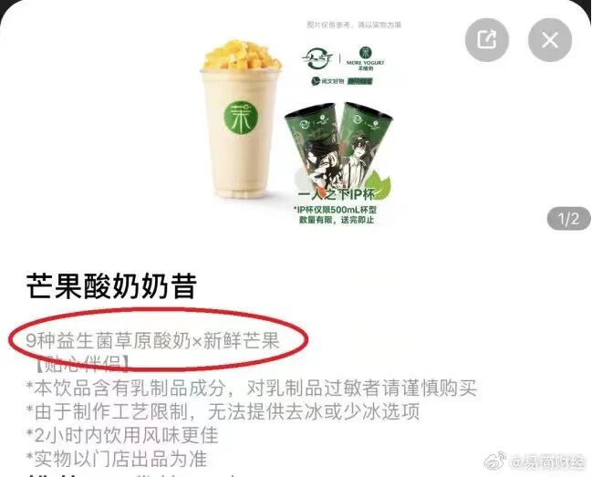 品牌也不用偷着乐,有着“酸奶刺客”之称的茉酸奶,一款芒果酸奶奶昔同样被点名。