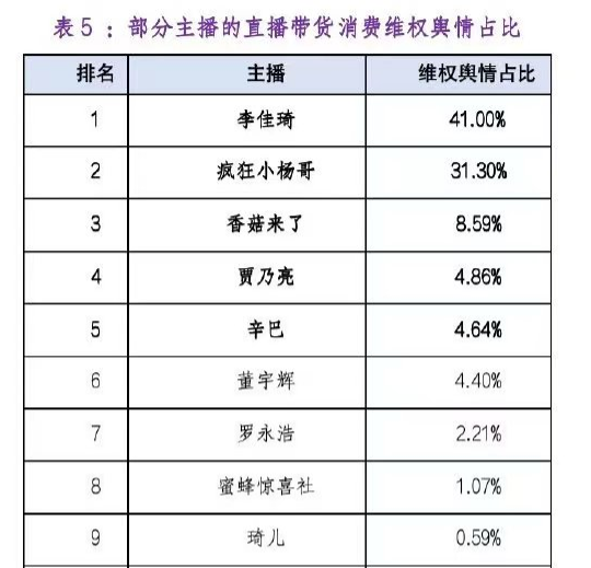 消费者网等机构就曝光17位主播去年直播带货消费维权舆情,其中李佳琦翻车最狠,涉及维权舆情最多,占比高达41%,其次是疯狂小杨哥、贾乃亮、辛巴和董宇辉等。