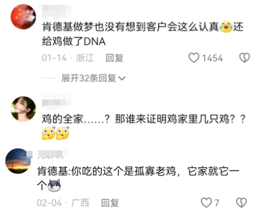 这一次做得更绝,拿着这桶鸡去验DNA,发现KFC里的鸡肉也不是一家人,最后赢了官司,索赔2000万美元(折合人民币约1.4亿元)。