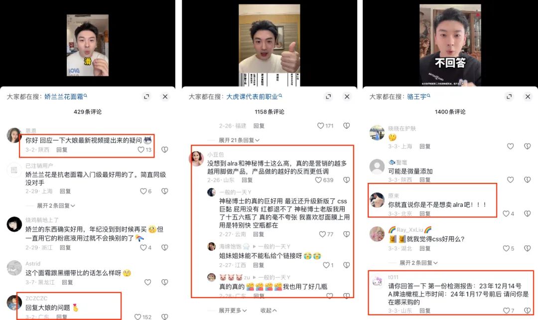 但同前文“灵魂拷问补水骗局”事件类似,“CSS事件”依然有疑点被指出。有网友指出,“大虎课代表”在视频里其实有暗暗通过拉踩 CSS 而抬高另外被送去检验的其中两个品牌—“ALRA”和“神秘博士”,认为这其实是场有预谋的“暗广”。