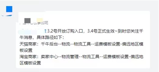 对于新疆包邮服务,淘宝平台在3月2日开放相关订购入口,3月4日正式生效,天猫和淘宝商家都可以在后台“运费模板设置-偏远地区模板设置”中查看。