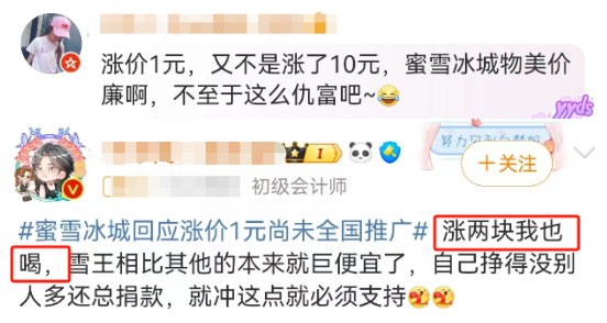 哪怕现在只是试探性涨价,涨价了还是便宜,但也会让小部分人产生落差,久而久之蜜雪冰城也会永远失去蜜门。