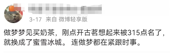 早在315之前,媒体对奶茶下手预热,搬来#315快到了蜜雪冰城们慌了吗#的话题。