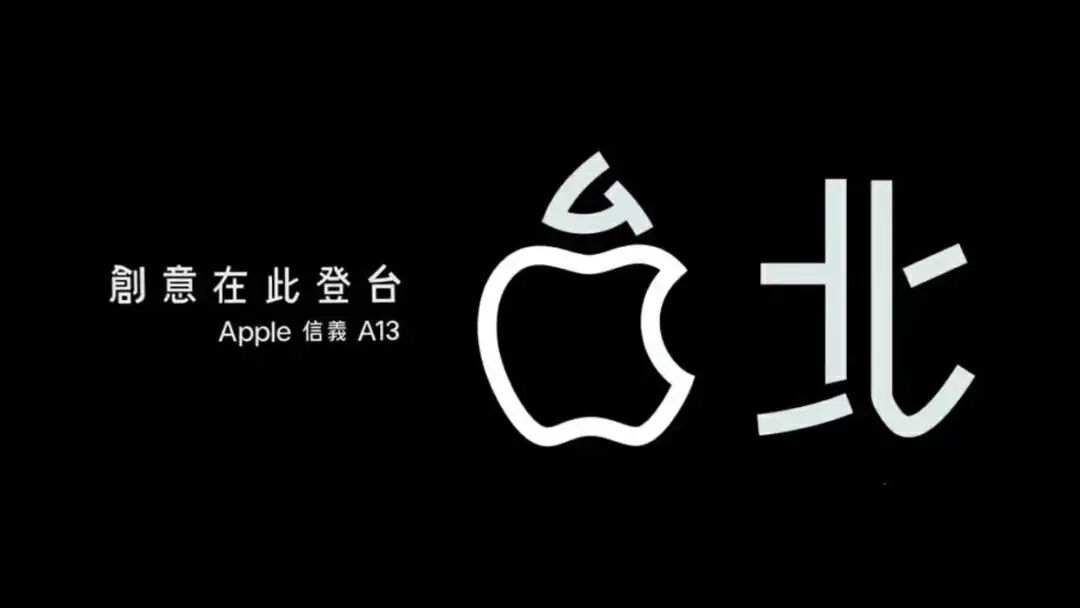 在台北店,苹果将logo和汉字"台"进行融合,配合着“创意在此登台”的文案,吸睛度十足。