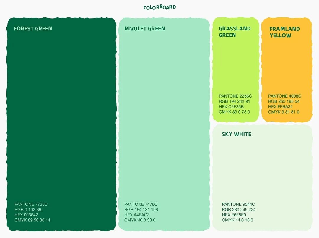 其中在吃饱吃好系列中,设计以天兴桥纵横交错的农田为视觉元素,构造了多变且具有鲜明田园属性的设计形式,一切的元素都跟随一块块田埂的形状而变化,代表着老疯杨与自然和谐相处的独特视觉语言。