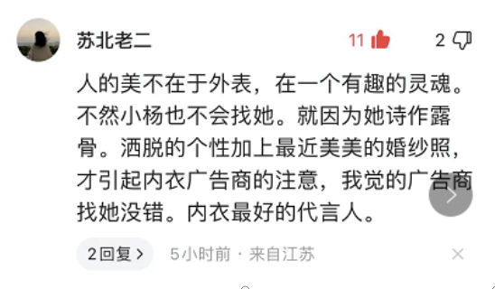 比如,在珀莱雅的“敢爱,也敢不爱”的七夕合作中,有人说她的形象不适合代言护肤品。