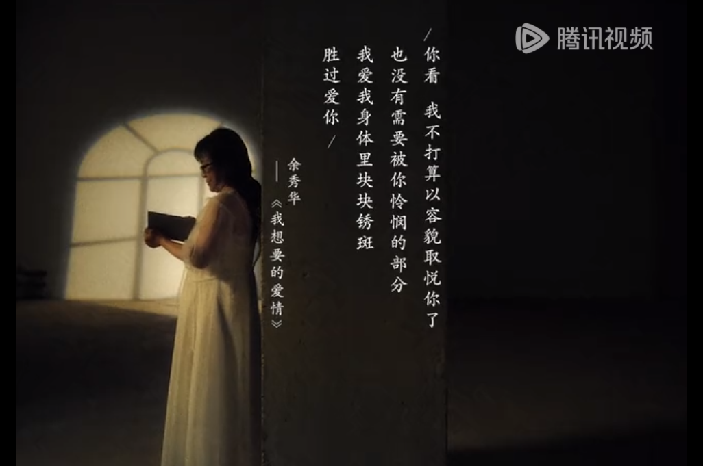 以“女生跟自己结婚(不要被外界定义,先学会爱自己)”反叛常规方式,讲述余秀华敢爱敢恨、爱自己的故事。