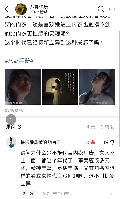 她带着创飞世俗价值观的犀利,替品牌说话。