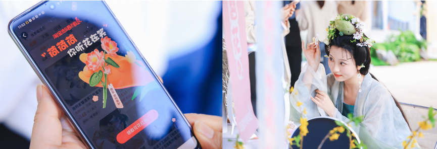 刚刚探讨了内容层面上的感受,“淘宝请你春天带戴花”选择了杭州天目里展出“中国簪花地图”,其实更是场景上的实体感受。在品牌塑造、营销活动中让用户多“参与”进来,更多的打造“用户现场”是最有效的方式。