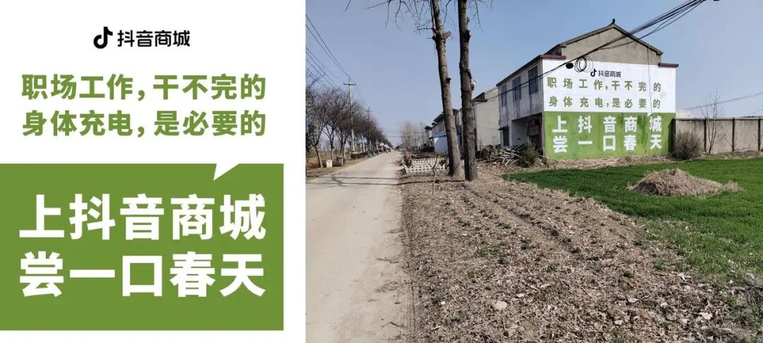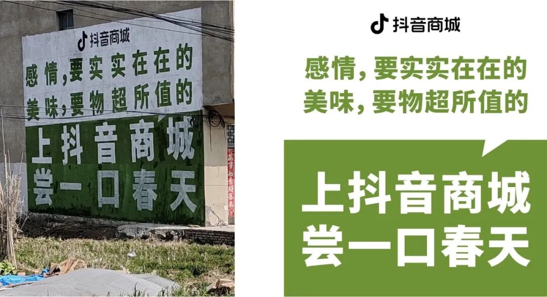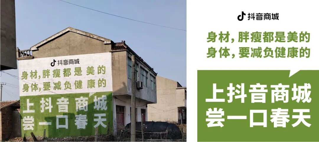 同时,抖音电商还在线下以规模化曝光的手法,在商圈、梯媒等中心化资源位,进行广告投放,提升活动在公共场所的亮相频次和密度。并以建筑外墙为介质,通过蕴含生活态度的创意文案,传递春日情绪。
