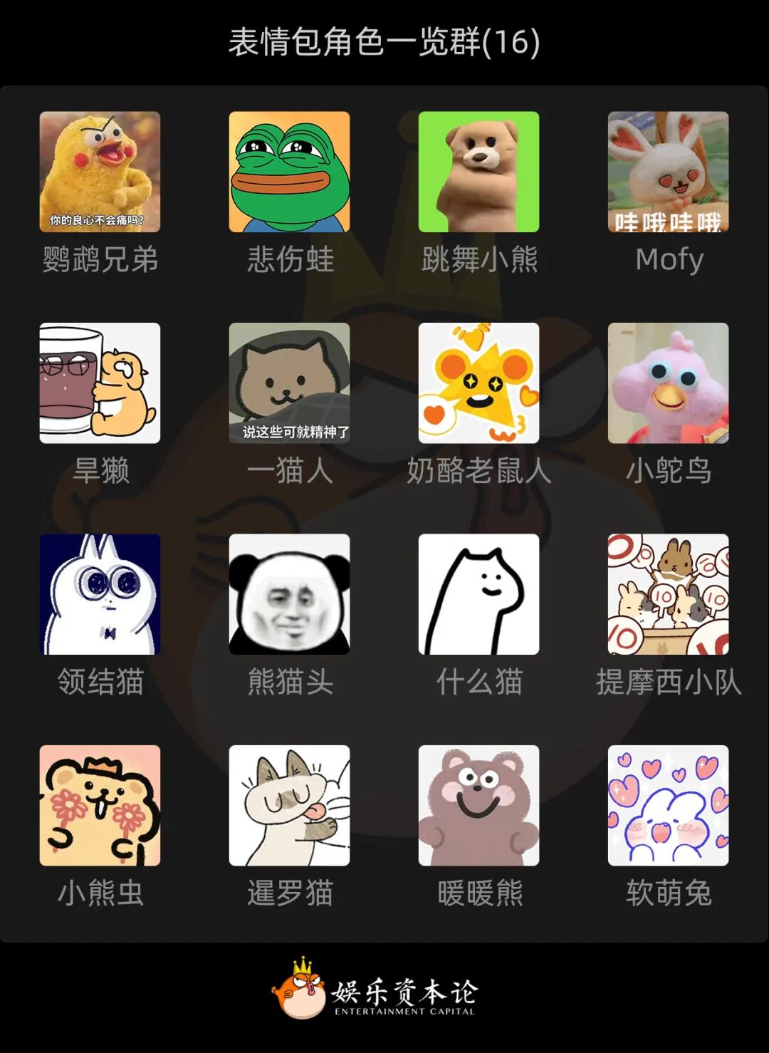 loopy、chiikawa、线条小狗、对话猫咪、比格多栋、无语佛、大笨狗、吗喽 、粉红兔子、卡皮巴拉……