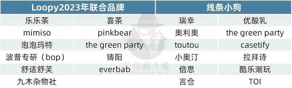 据小娱统计,2023年内与loopy联名的品牌就超过十家,品类覆盖美妆、洗护、饮品、潮玩等不同品类。甚至今年2月底,还有品牌发布了和loopy的联名。线条小狗同样如此。