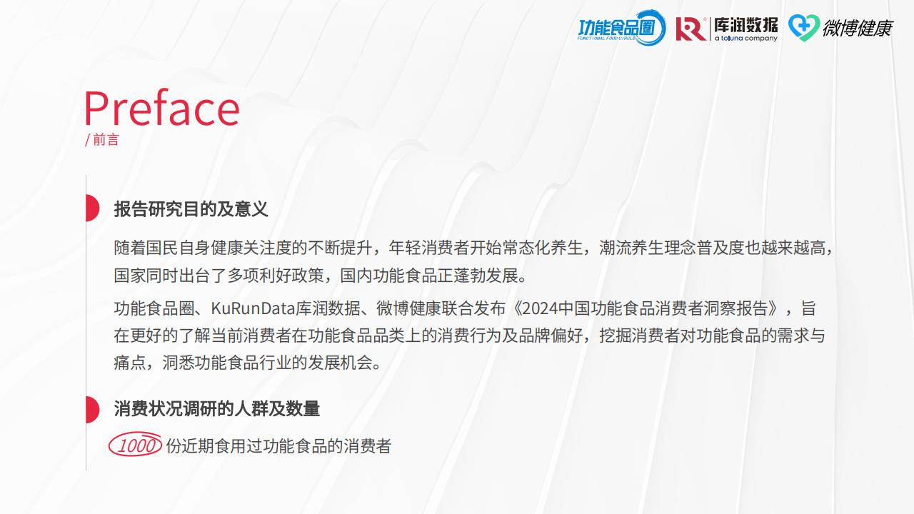数据报告来源:库润数据&功能食品圈&微博健康《食品行业:2024中国功能食品消费者洞察报告》