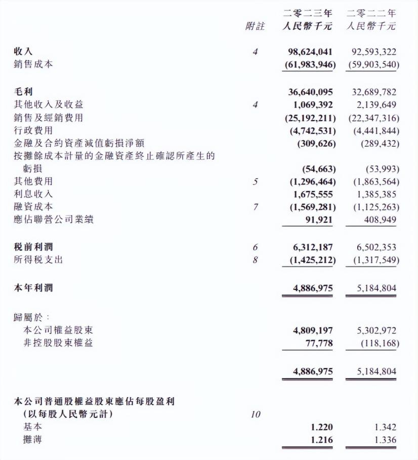 年报显示,2023年,蒙牛乳业实现营业收入986.24亿元,同比增长6.5%,净利润48.09亿元,同比下跌9.31%。