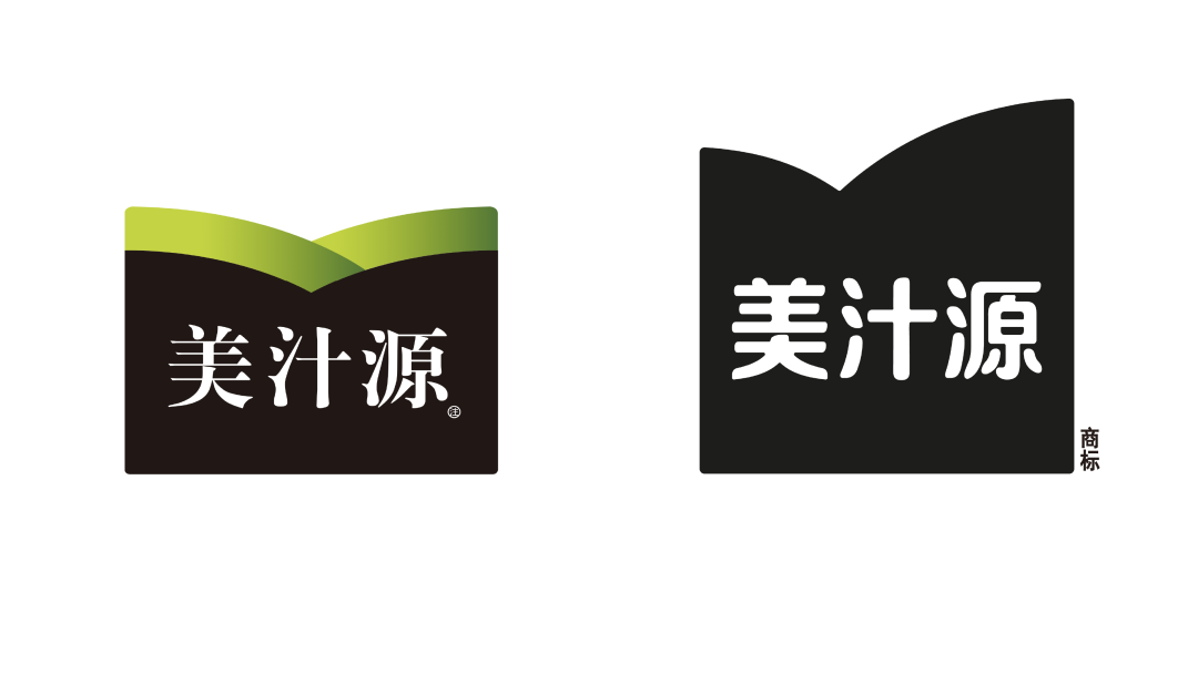 【美汁源】LOGO标签焕新,整体变得更加简洁、新鲜,既能保持品牌原有的品质感,又彰显了品牌的年轻与活力。其中最大的变化就是去掉了顶部的绿色外框元素,并调整了山谷图形的曲线弧度,强化不对称感,象征着心情的转变--愉悦感从左向右移动的过程中逐渐递增;此外,搭配的定制中文字标,字体笔画变得更加圆润、亲和,保证良好的可读性。