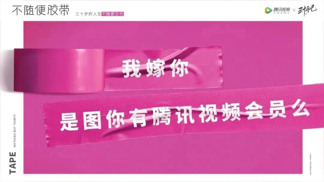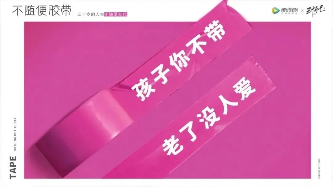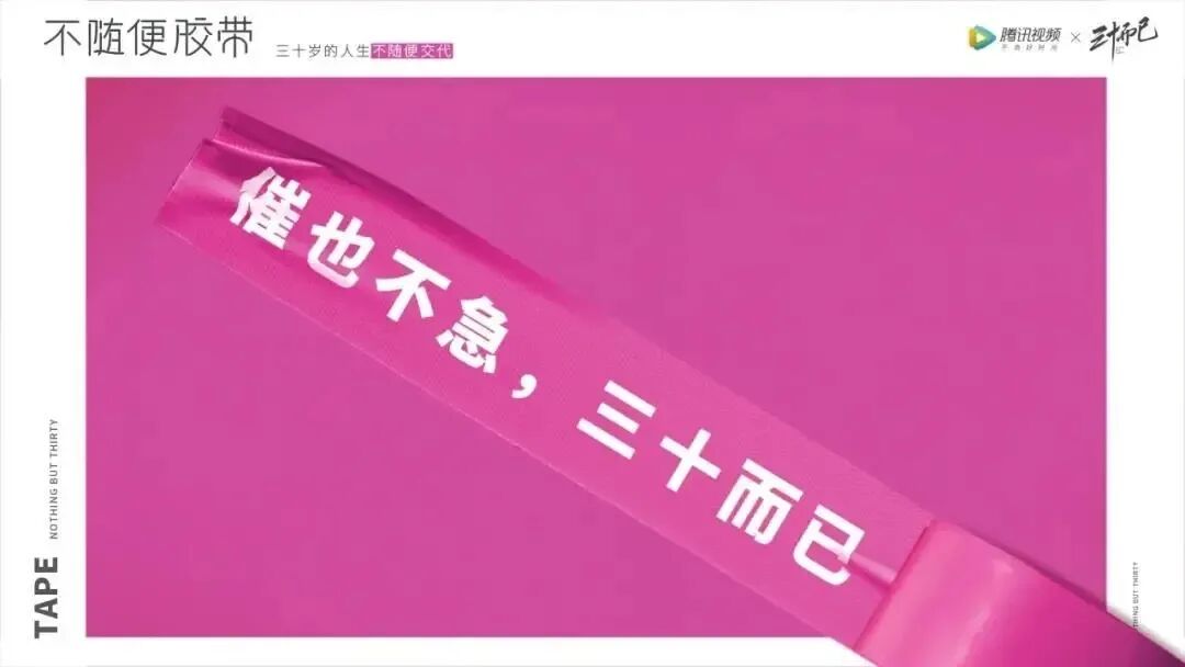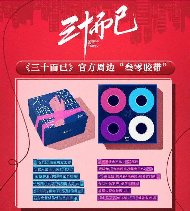 为了扩大宣传效果,腾讯和《三十而已》还推出了「不随便胶带」周边,将创意延伸至线下落地。