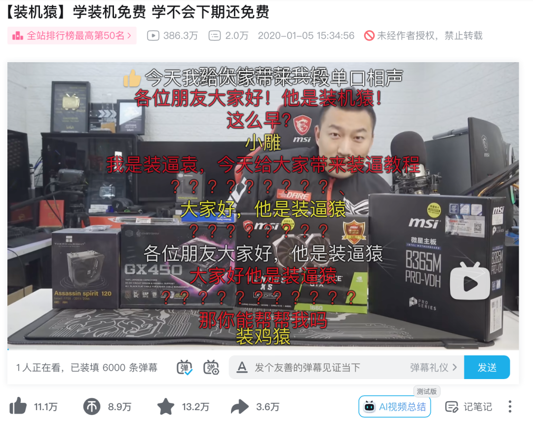 在 B 站上,装机教程视频,经常能拿下数百万的播放,是很多粉丝非常爱看的视频内容。