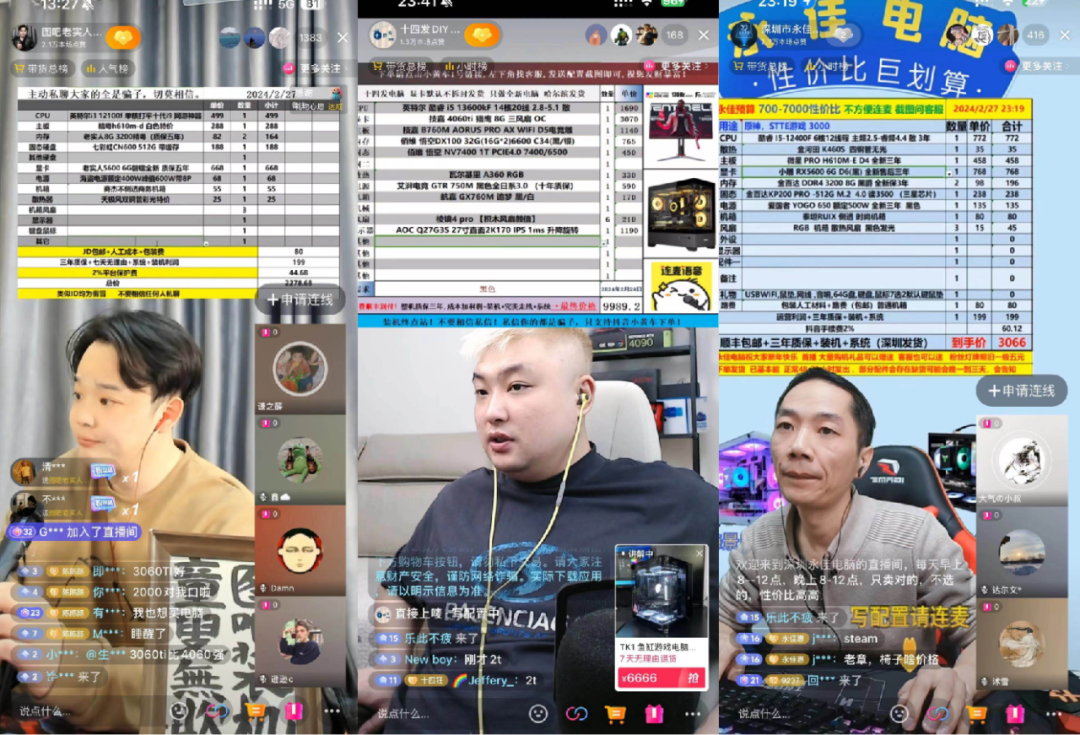 第二类会在各个装机直播间多番对比后再购买。有的消费者会追求极致的性价比,所以会将自己的需求在多个直播间咨询,最后总结出一套适合自己的配置单。