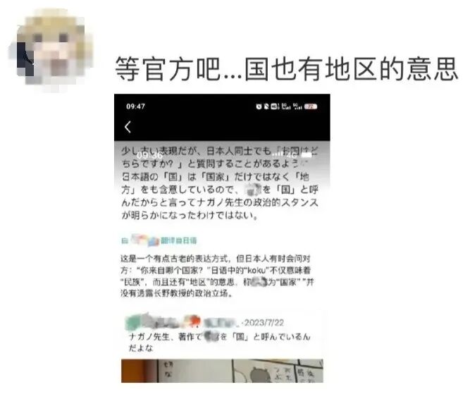 而精通日语的朋友却不以为然,称在日本任何人看到“国”这个字都不会联想到是地方的意思,真实意图就如字面所示。