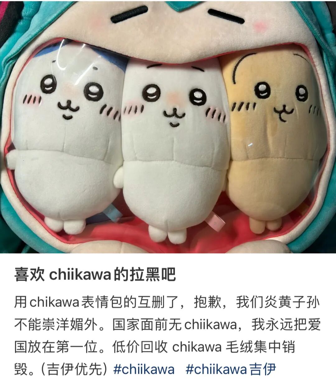 这番带有浓烈政治色彩的言论,马上让Chiikawa粉丝们炸开了锅。