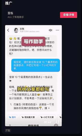 例如在刷抖音的时候,很多人肯定刷到过关于这样的豆包APP视频: