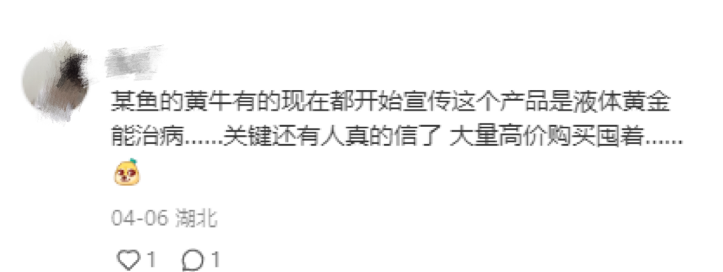 如今这瓶335毫升的龙井新茶化身新一代理财产品,8元的原价被已经被黄牛们炒到40元以上。更有人为了出货叫卖道:“这饮料是【液体黄金】,包治百病。”