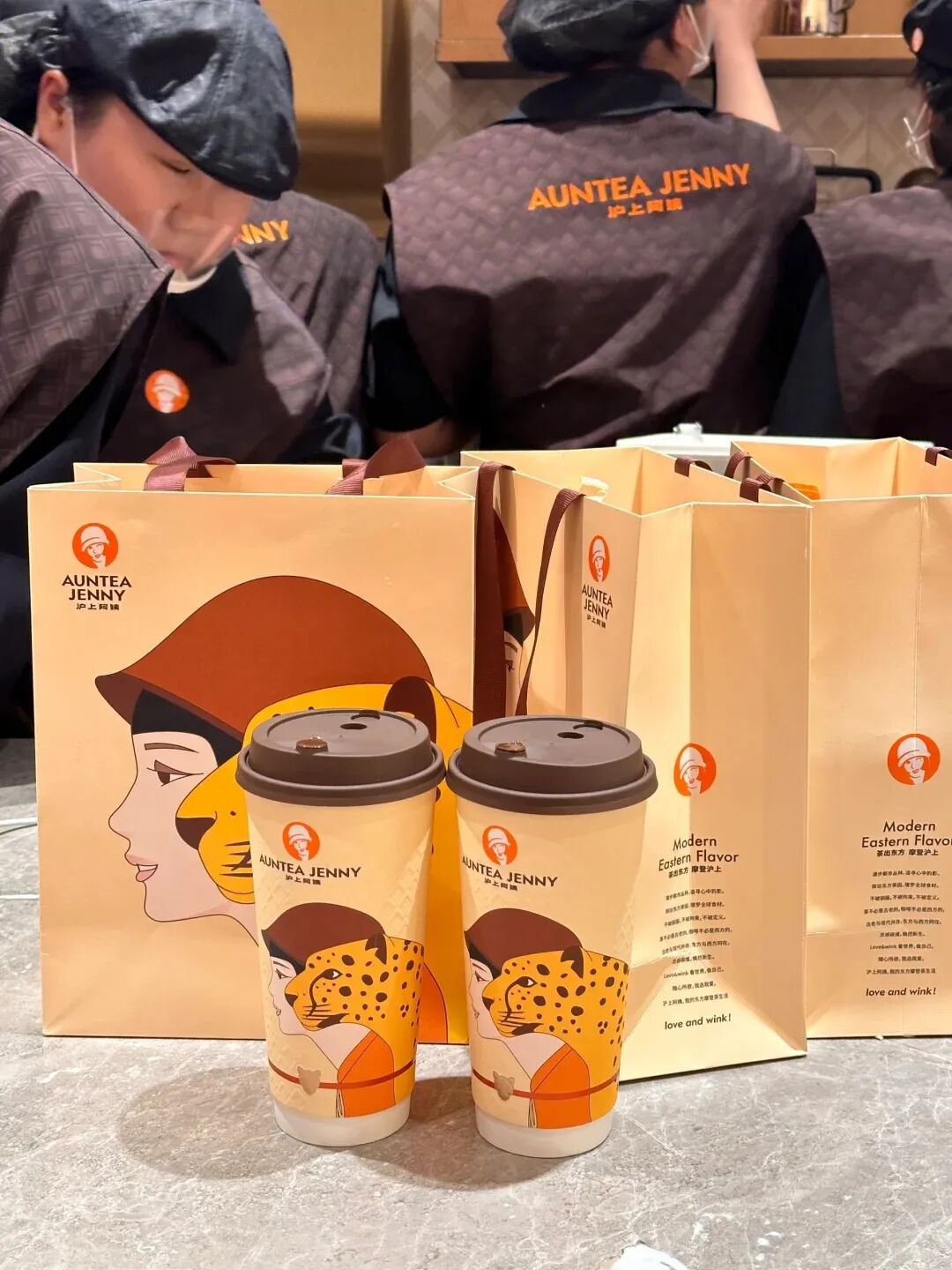 新LOGO不仅运用到奶茶杯和包装袋设计上,还被运用到门店的设计和装修上。接下来,我们来看看沪上阿姨新LOGO设计吧。