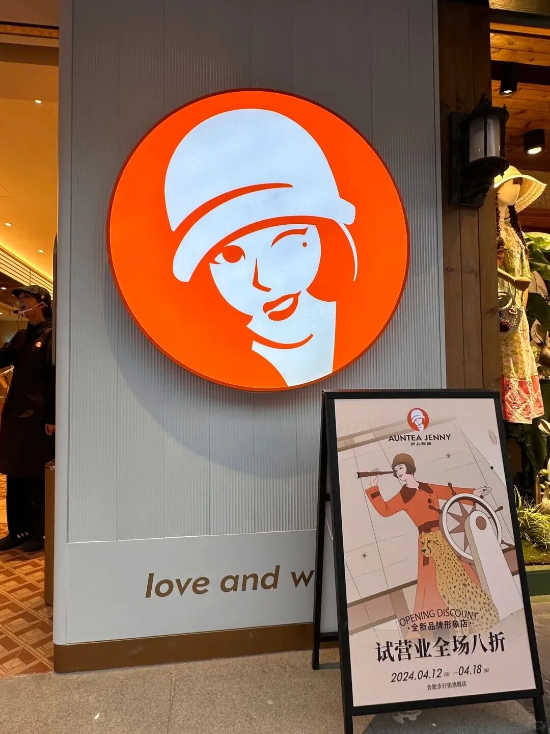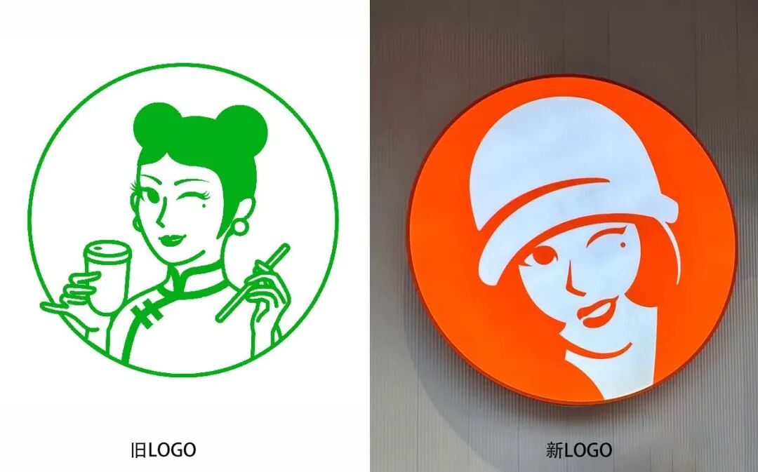 门店新LOGO则以黄橙色为底色,整体形象从阿姨变成了戴着贝雷帽、蘑菇头的时尚小姐姐,不过保留了长着美人痣、眨眼睛的特征,形象焕然一新,视觉效果更突出。