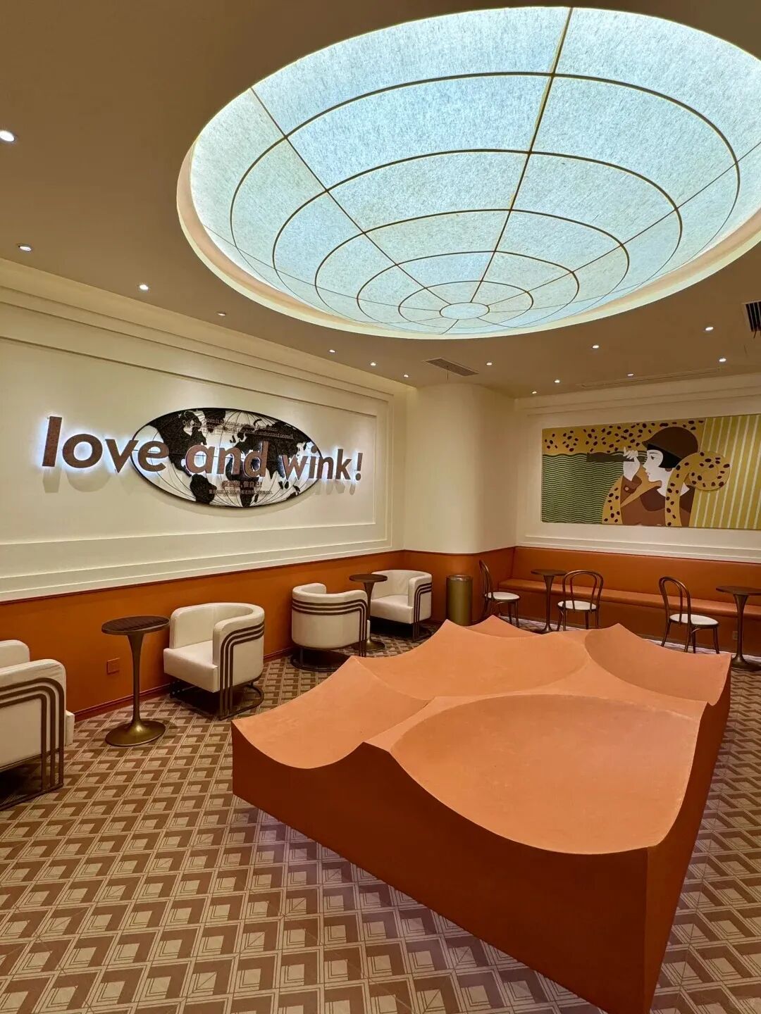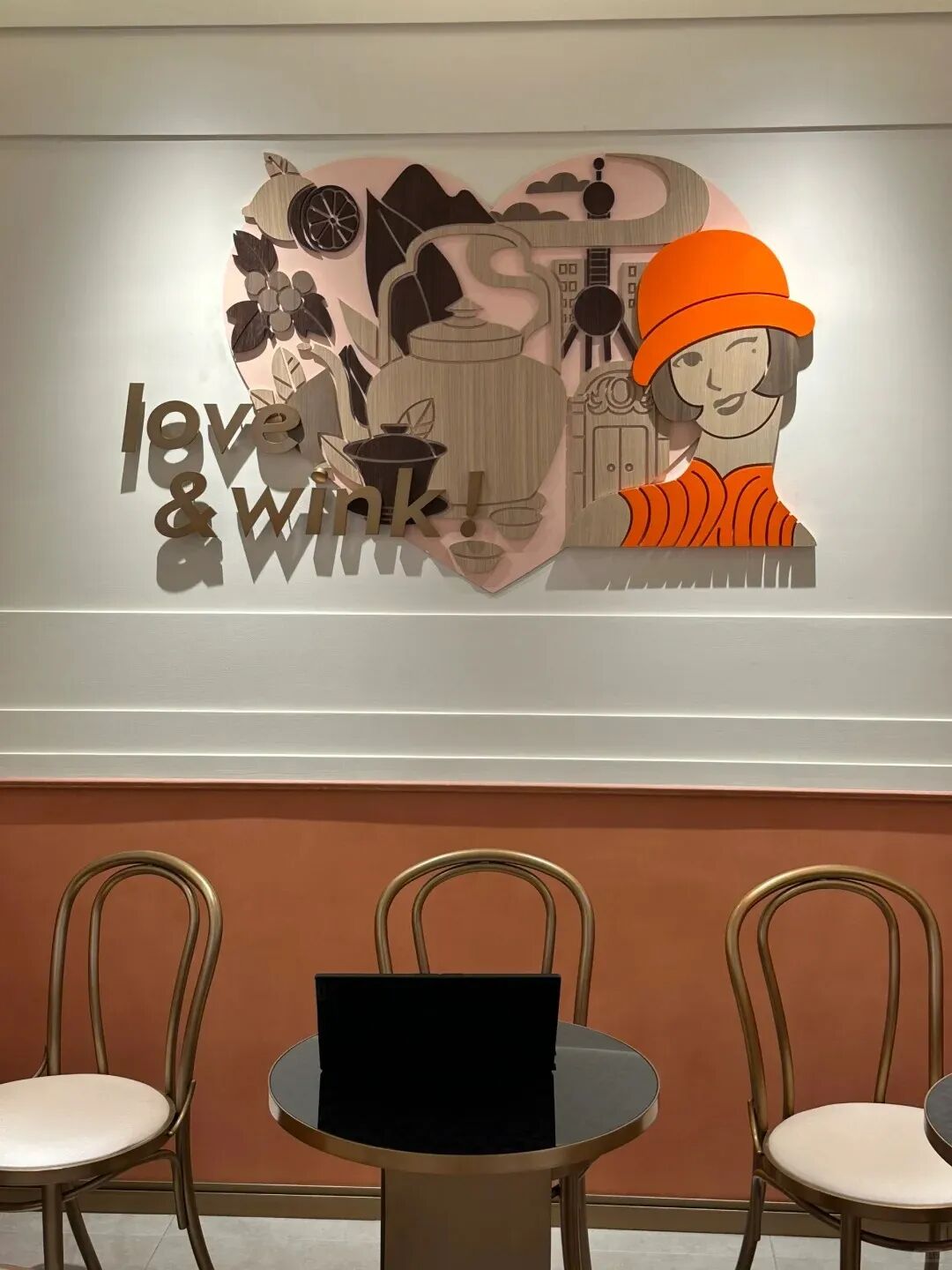 而且,全新品牌形象店的宣传语是“love and wink”。门店装修风格既保留传统的韵味,又呈现了精致的时尚感。