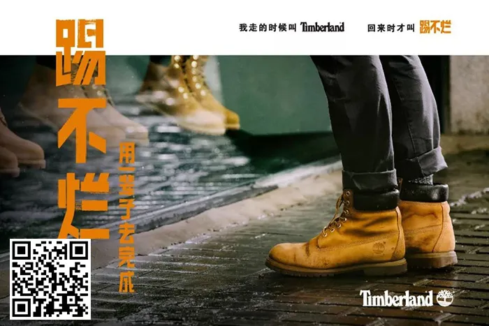 扫描二维码观看视频而在2018年,Timberland发布了全新的品牌广告片,延续了谐音变化之后的“踢不烂”主题,以一双鞋的视角阐述了: “我走的时候叫Timberland ,回来的时候才叫踢不烂”。