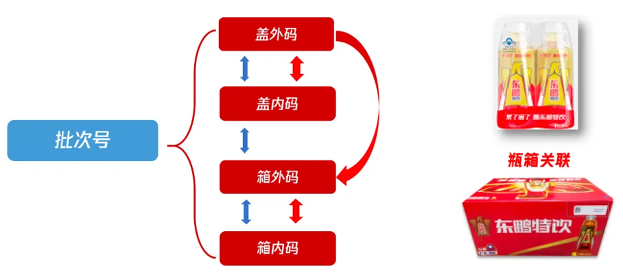 通过“扫码赢红包”直接链接消费者后,东鹏从2017年启动商户体系数字化的搭建,从产线端开始改造,搭建了生产批次码、瓶盖内码、瓶盖外码、纸箱内码、纸箱外码“五码关联”的二维码体系,实现商品流转全过程中对每一件产品的精确追踪,复杂的商品流通系统完全透明化。