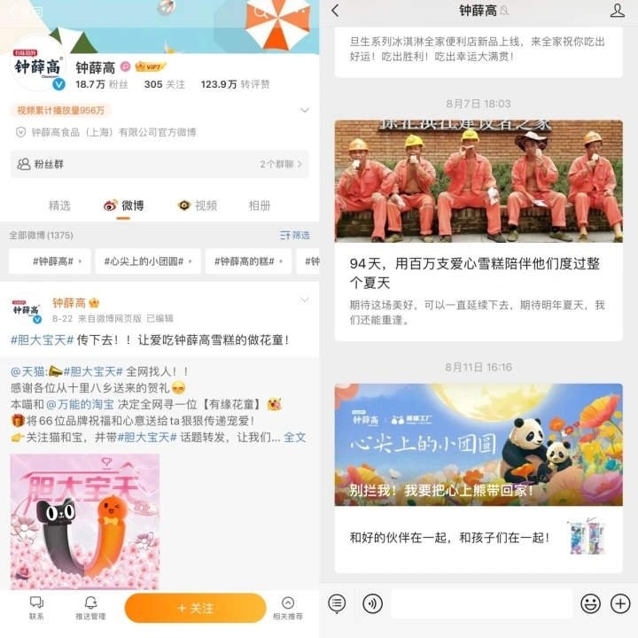 实际上,钟薛高官方微信上一次更新停留在8月11日,发布内容仍为推荐联名新品,发布跨界合作的消息。官方微博的更新日期则停留在8月22日,该微博下方还有疑似合作方讨要执行费用,并表示:“3月份给贵司做的项目,发票4月初就开了,现在也未付款。”