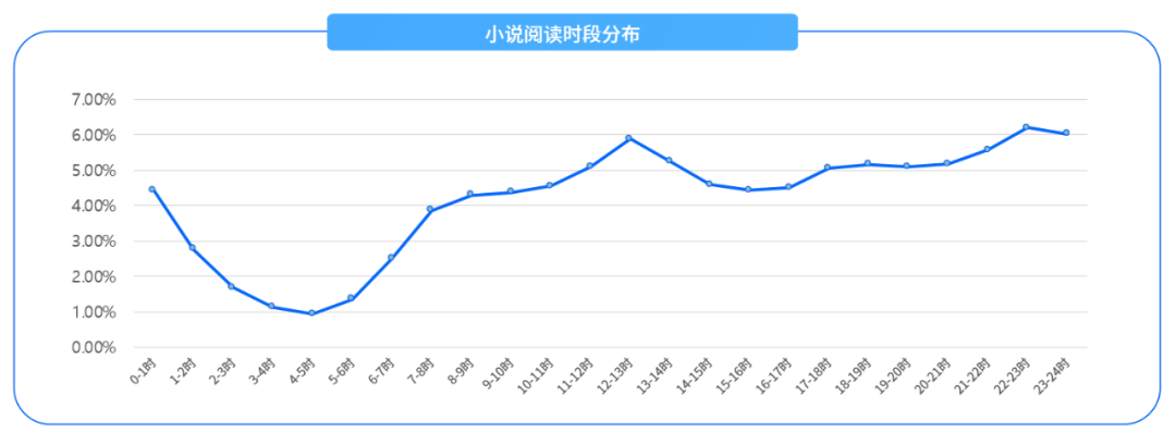 从阅读时间分布来看,白天7点-1点时间段,所占时长较平均,可以说用户全天不离手。