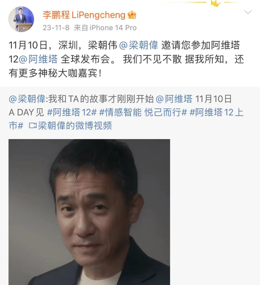 李鹏程的微博,从2023年11月8日之后,就没再发过和阿维塔相关的内容了。