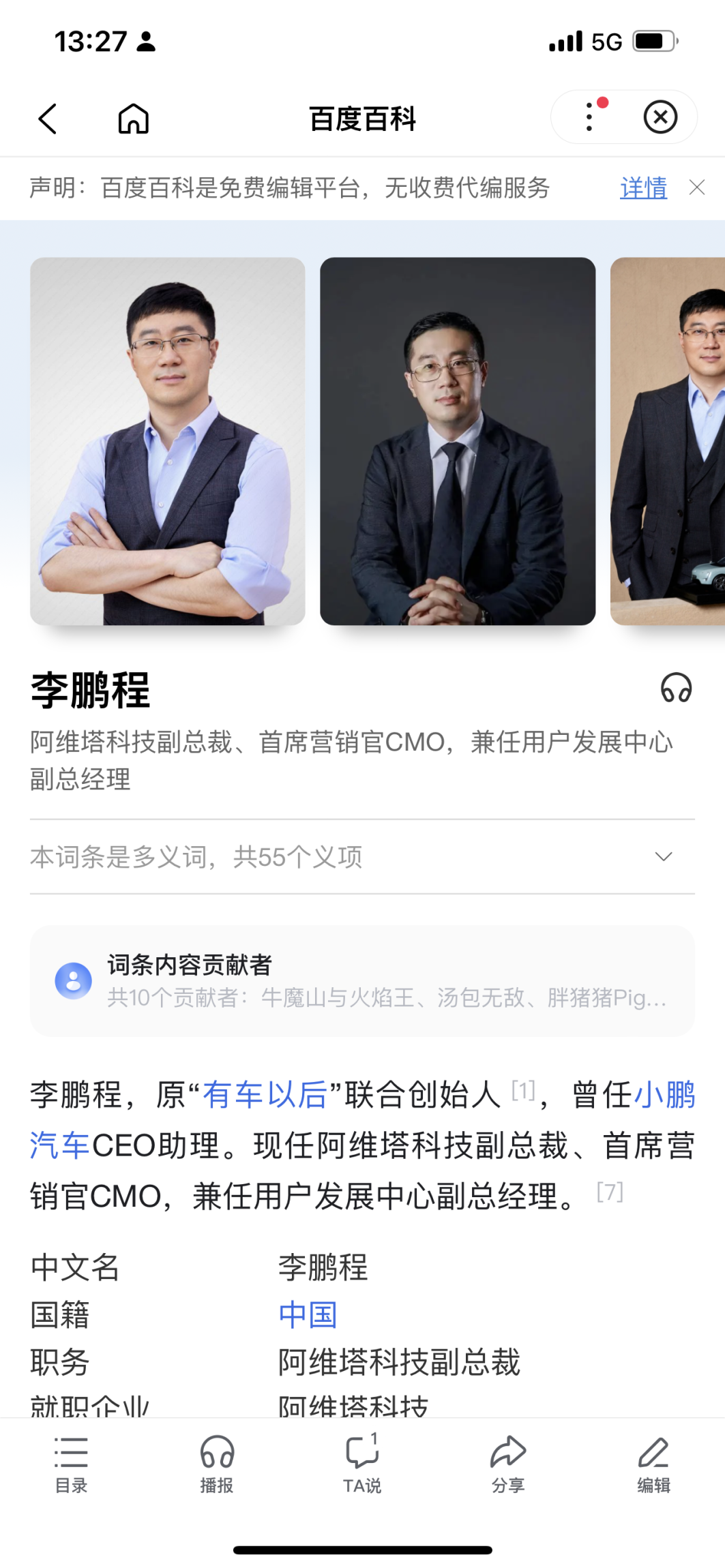 李鹏程在2015年就是大众汽车品牌公关总监。2019年,加盟小鹏汽车,出任品牌公关总经理,一直干到了“CEO助理”。