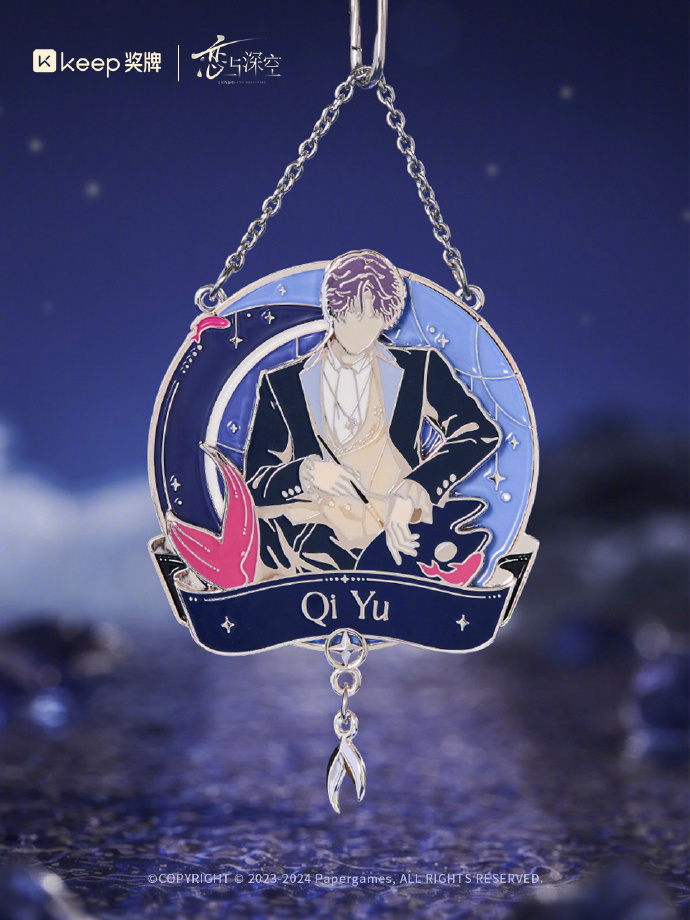 奖牌悬挂银色雪花吊坠,星球元素点缀其中